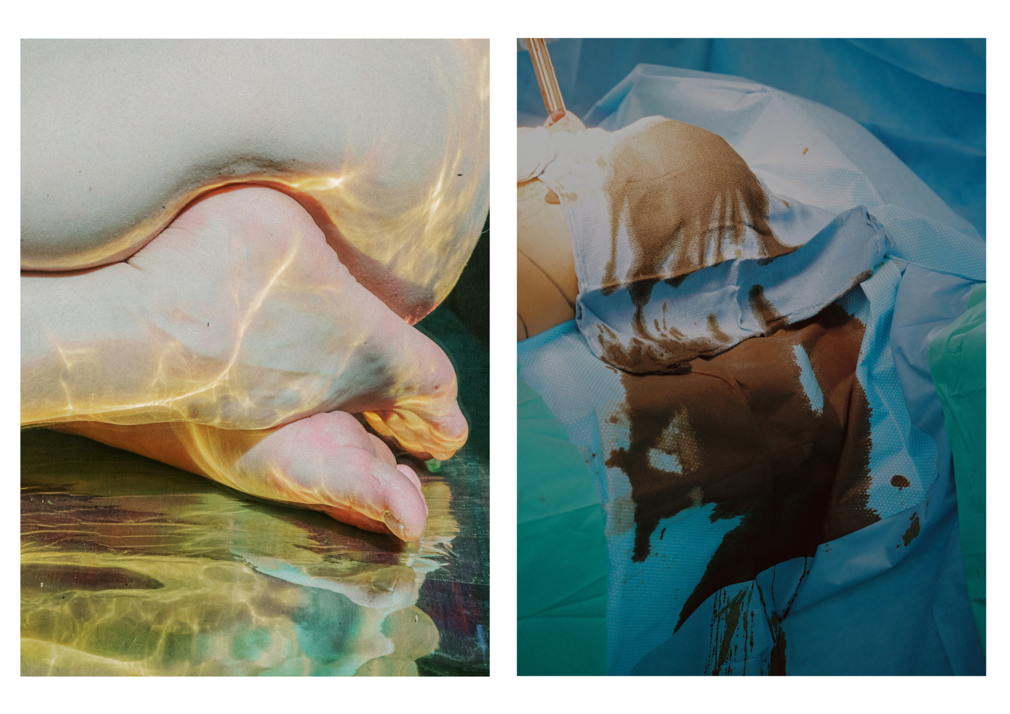 Ces images n’auraient très certainement pas été les mêmes dans un autre contexte. L’expérience du confinement et de la solitude a été assez libératrice, cela a eu un impact sur le fait que je décide de prendre mon propre corps comme sujet. Je pense aussi que ce n’est pas un hasard que ce travail arrive après la série réalisée au sein d’un bloc opératoire. J’avais en quelque sorte besoin de rejouer ce que j’avais vu. Encore une fois, c’est une analyse que je fais a posteriori, ce n’était pas forcément conscient au moment de la prise de vue. Aujourd’hui, j’envisage ce travail comme une dissection, un regard détaché sur mon corps. Ce qui rendait la chose supportable à mes yeux, c’est que je ne considérais plus mon corps comme tel, mais comme une entité que l’on va découper pièce par pièce, pour tenter d’en saisir le sens, ou l’essence.