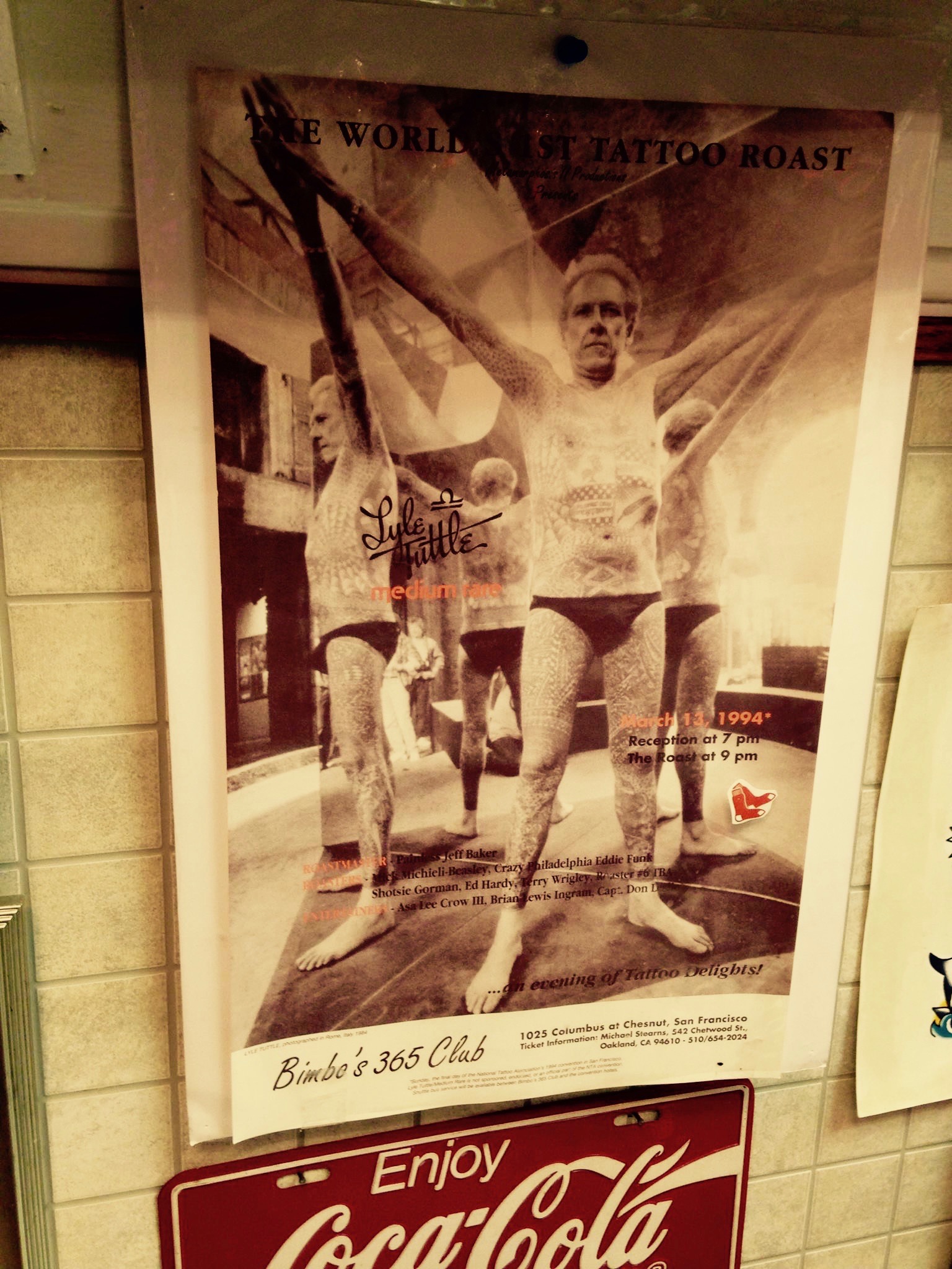 True, I tattooed a lot of musicians such as Bill Graham. He used to say that his favorite pastime in the band room was showing off his tattoos! Back in those days I was really busy and I’m not a big music fan. Music to me is like noise in the back of the bar. But I can tell you some stories I have in mind. Jim Croce: I tattooed him and he didn’t bother to tell me who he was. A woman came up here one day, she had two guys with her and she was opening a restaurant in San Diego California. It was going to be called Croce’s and she wanted to know all about the day I tattooed her husband. I said, “Croce, Croce, you’re not talking about Jim Croce, are you?” He had died in an airplane crash and she had come to ask me about the time I tattooed him. I was sure I didn’t tattoo this guy but she said, “yes you did”. But he came here he didn’t tell me he was Jim Croce! I would have liked to meet him because to me the interesting thing about music is the lyrics, the words.