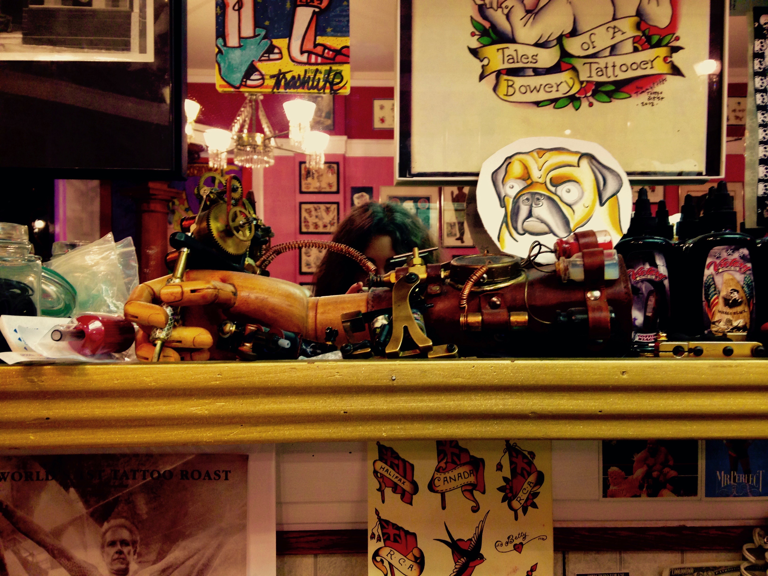 En remontant Columbus Street, je suis passée devant ce tattoo shop, comme tous les soirs et matins d’ailleurs. L’air doux et frais me pousse vers mon chez-moi au chaud, avec un café. Allez, j’ai bien cinq minutes, disons que c’est aujourd’hui ou jamais.