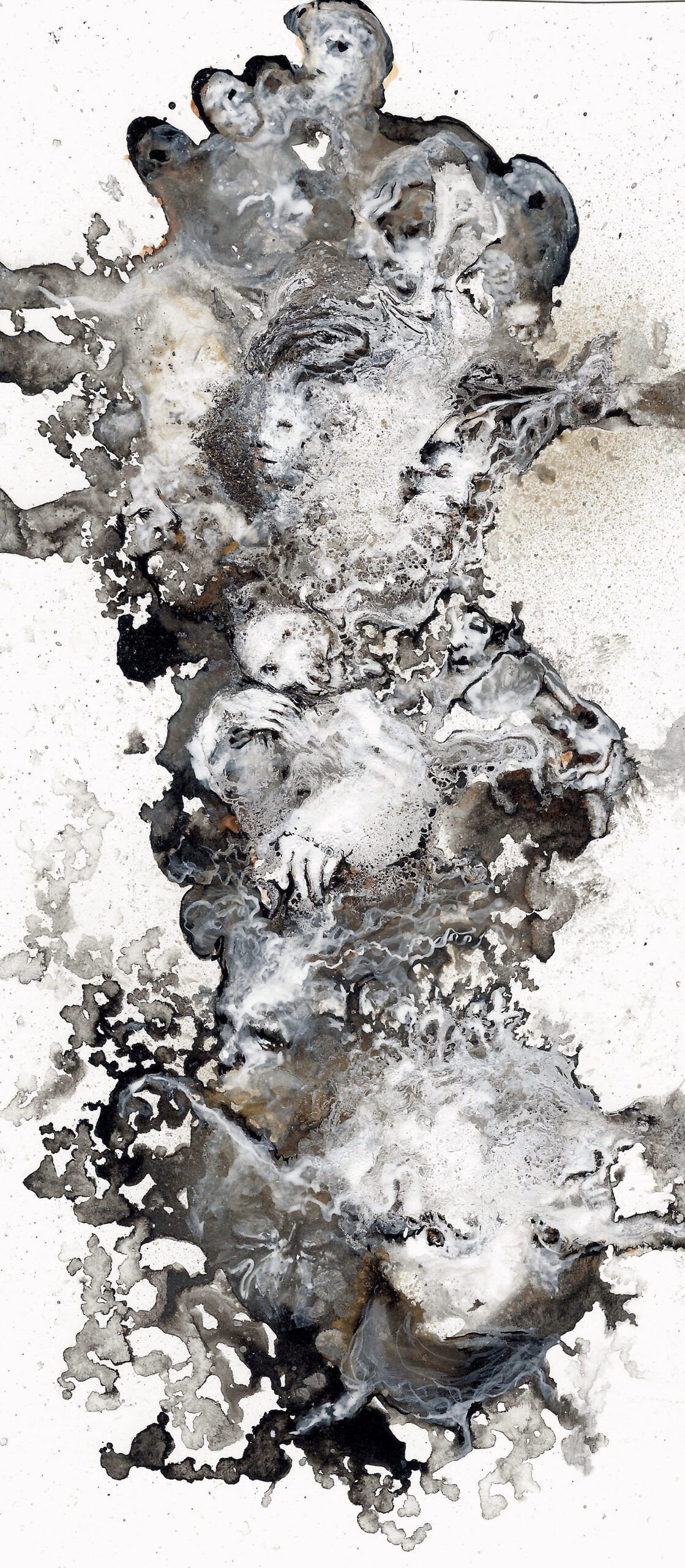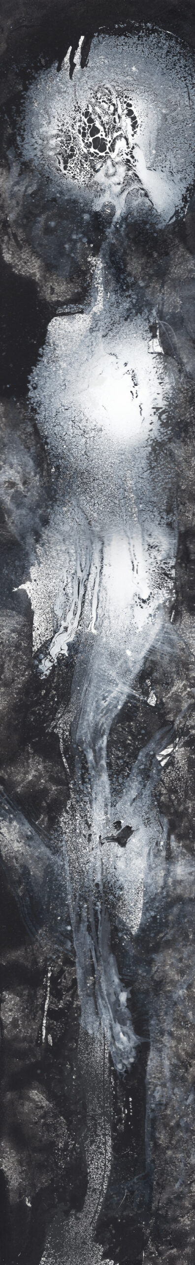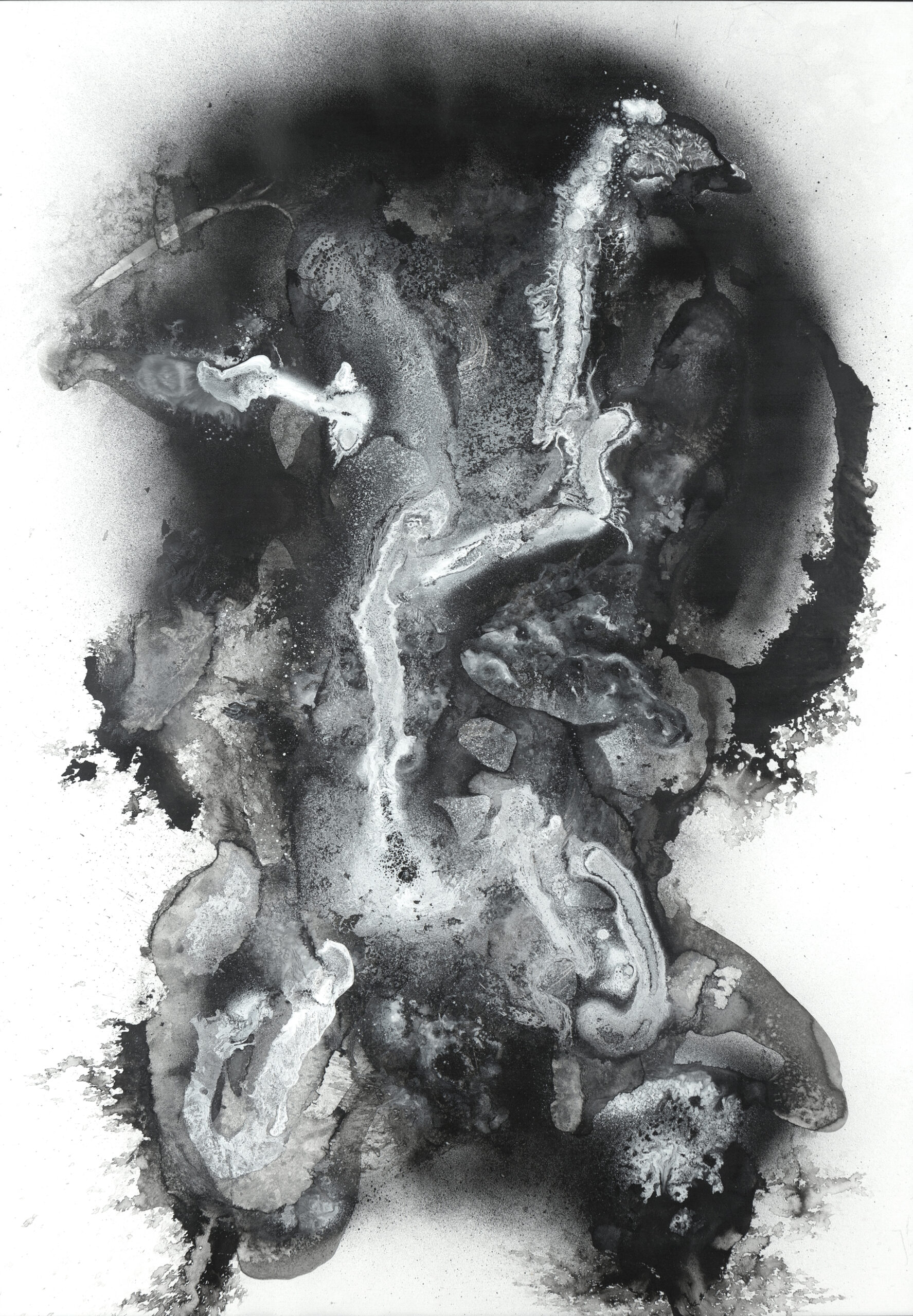 Non, mon cher Johnny, noir ce n’est pas noir, n’en déplaise à ta chanson. Car noir brillant et noir mat devraient porter des noms de couleurs différents. Les expansions luminescentes de nikiNeuts en témoignent. Ni complètement abstraits, ni totalement figuratifs, ces fils de fer, dessins, encres, huiles et acryliques sur carton font la part belle à la matière. L’imagination est titillée par ces cosmogonies foisonnantes de détails. La poésie est au rendez-vous, assurément. Dans ces clairs-obscurs modernes, nikiNeuts use des silences pour laisser s’exprimer le matériau, le vivant. Cinquante nuances de gris, à goûter une par une.