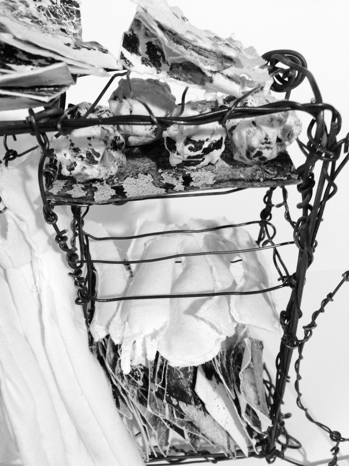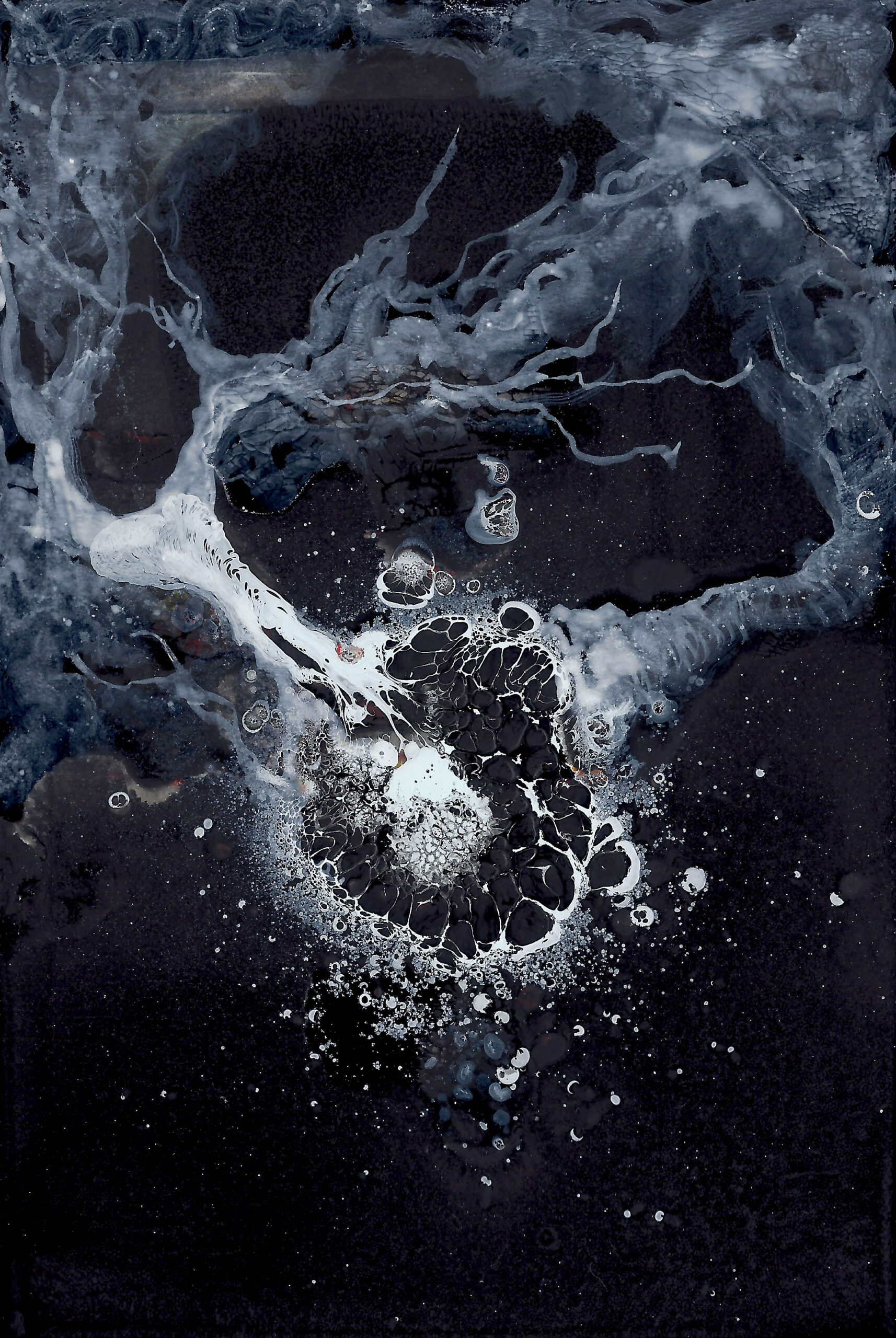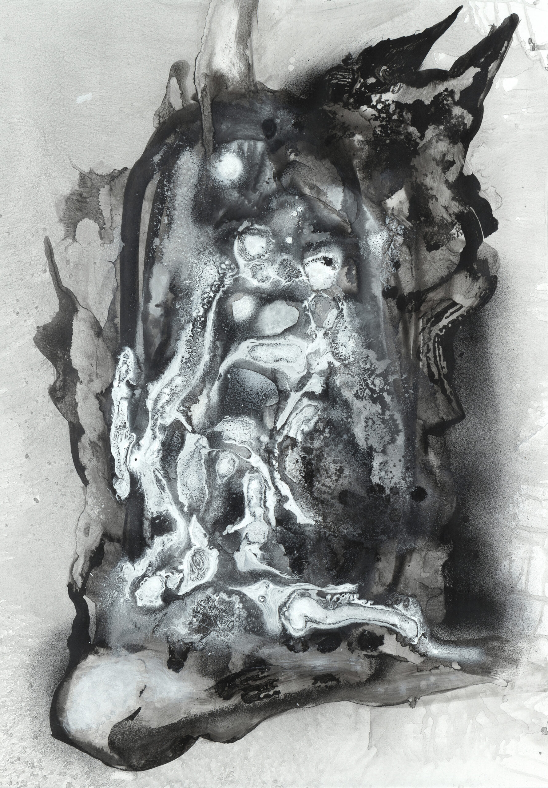 Non, mon cher Johnny, noir ce n’est pas noir, n’en déplaise à ta chanson. Car noir brillant et noir mat devraient porter des noms de couleurs différents. Les expansions luminescentes de nikiNeuts en témoignent. Ni complètement abstraits, ni totalement figuratifs, ces fils de fer, dessins, encres, huiles et acryliques sur carton font la part belle à la matière. L’imagination est titillée par ces cosmogonies foisonnantes de détails. La poésie est au rendez-vous, assurément. Dans ces clairs-obscurs modernes, nikiNeuts use des silences pour laisser s’exprimer le matériau, le vivant. Cinquante nuances de gris, à goûter une par une.