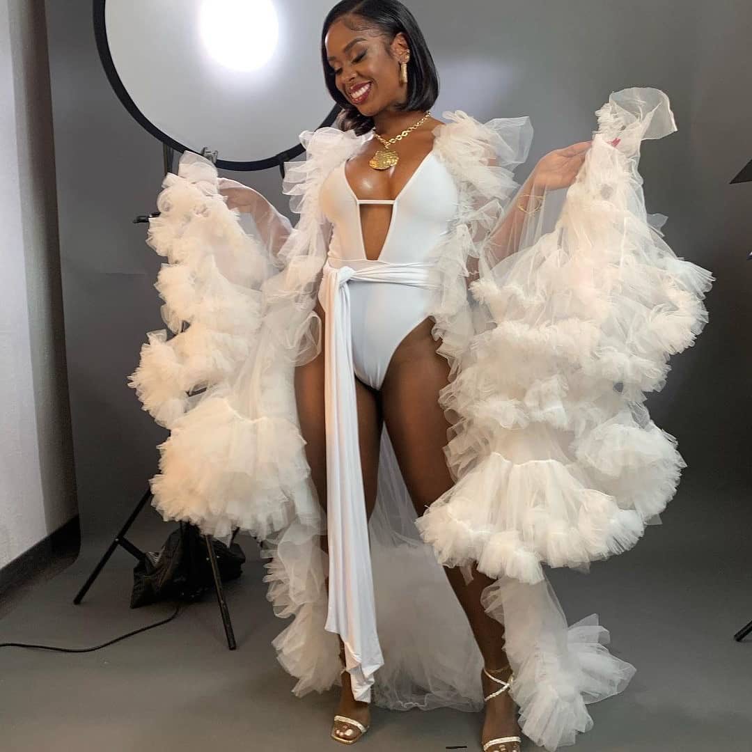 Chez elle, dans un coin du salon aux murs bleus, violets et roses dégoulinants qu’elle a peints elle-même, Michelle se tient paisiblement face à moi. La fumée qui émane de son thé, noué de ses mains, glisse jusqu’au sourire qu’elle me tend. Derrière elle à gauche, des miroirs et une barre de pole dance qui scintille, reflète la lumière du soleil qui s’infiltre à travers les canisses. L’endroit où vit Michelle est magique, et je réalise que ce lieu est une œuvre à part entière. À ma droite, j’aperçois son showroom, une pièce dédiée qui contient toutes ses créations. Du sol au plafond, les robes en tulle multicolores suspendues s’impatientent d’être portées pour le prochain ball, le prochain shooting photo, la prochaine performance musicale…