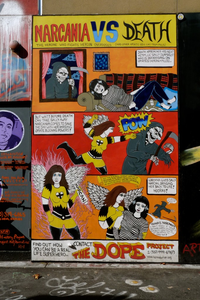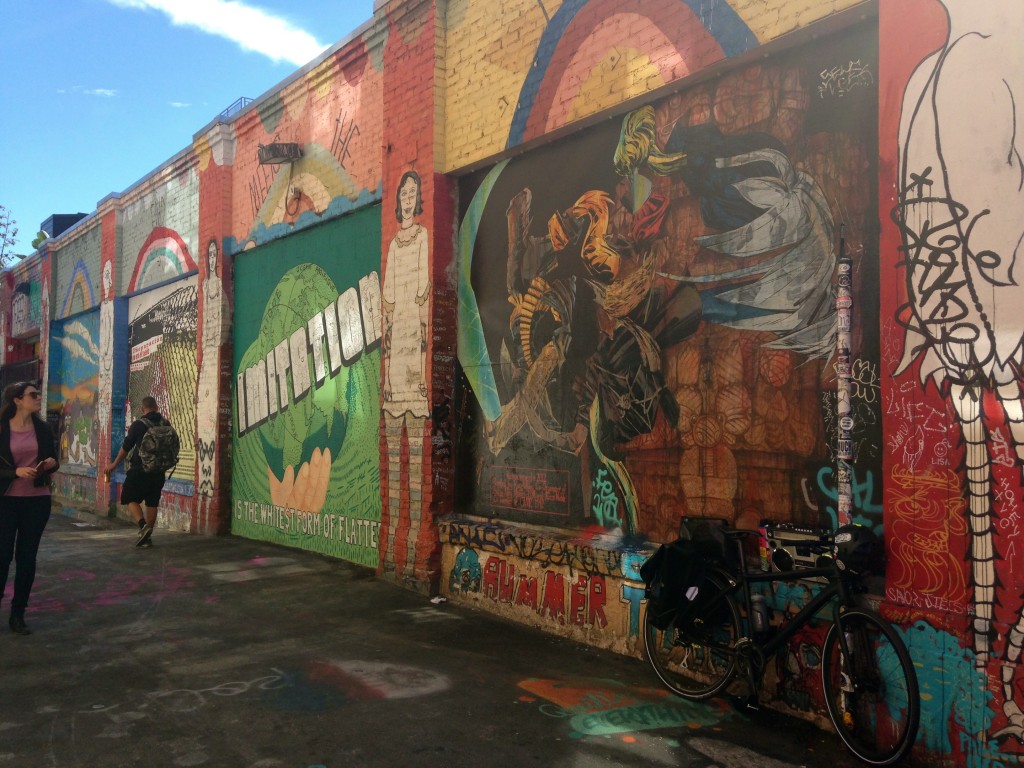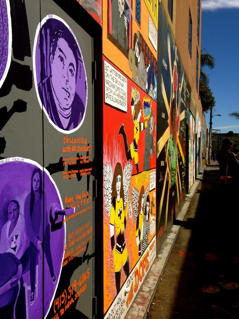 La Balmy Alley représentée sur ces photos, est la plus connue du quartier. Les premières fresques apparaissent au milieu des années 80. Les tags sont régulièrement recouverts pour laisser carte blanche à de nouveaux artistes, de nouvelles inspirations et revendications. C’est comme si cette rue était une sorte de salle d’exposition ouverte à tous, une salle d’expo libre service. Droits de l’homme, gentrification, choix politiques affligeants, discrimination, immigration, système carcéral, port d’armes aux Etats-Unis, tous les thèmes révoltant la population sont abordés dans cette ruelle, véritable porte-parole de plusieurs générations luttant pour la paix et la justice.