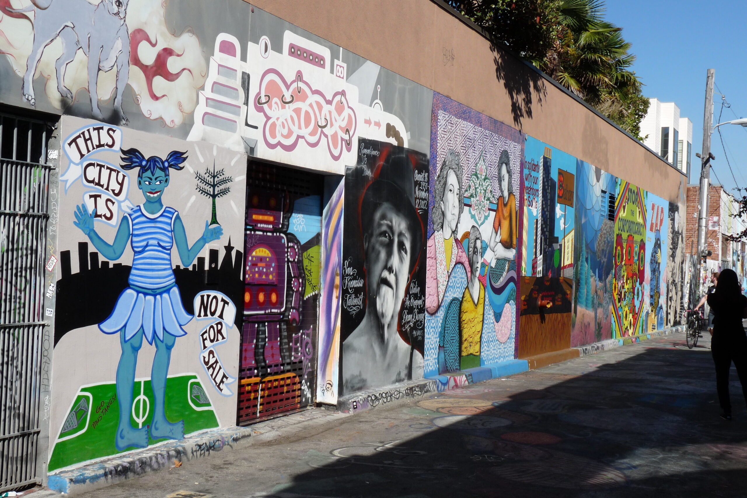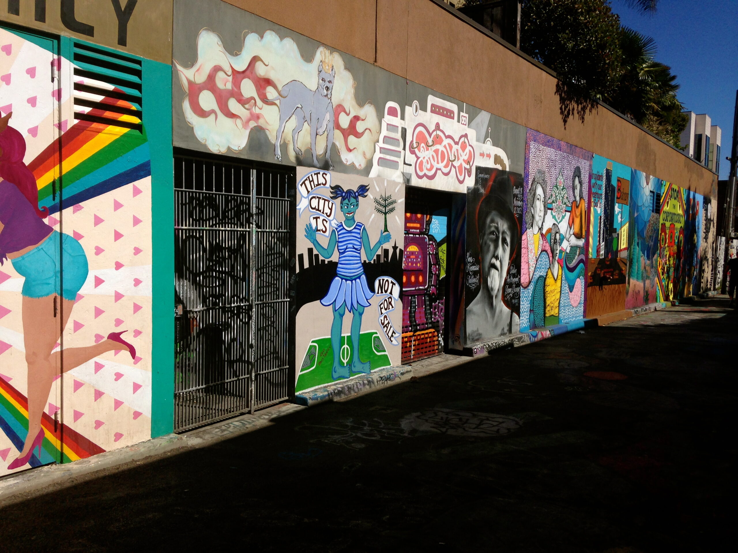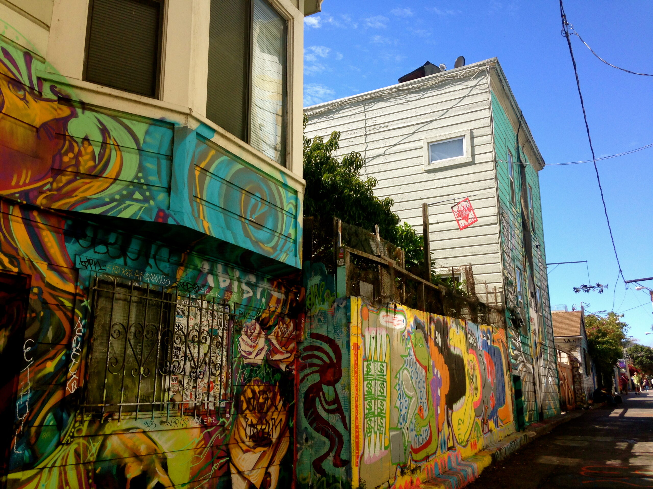 La Balmy Alley représentée sur ces photos, est la plus connue du quartier. Les premières fresques apparaissent au milieu des années 80. Les tags sont régulièrement recouverts pour laisser carte blanche à de nouveaux artistes, de nouvelles inspirations et revendications. C’est comme si cette rue était une sorte de salle d’exposition ouverte à tous, une salle d’expo libre service. Droits de l’homme, gentrification, choix politiques affligeants, discrimination, immigration, système carcéral, port d’armes aux Etats-Unis, tous les thèmes révoltant la population sont abordés dans cette ruelle, véritable porte-parole de plusieurs générations luttant pour la paix et la justice.