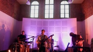 Quand une nana habillée en agent de sécurité a commencé à l’insulter, j’y ai cru aussi. Jusqu’à ce qu’elle utilise son pistolet (à eau). Nous débarquons dans un village désert, accueillis par une horde de militaires. Mais ça, ce n’est plus la performance, c’est l’état d’urgence … Nous arrivons face à une salle des fêtes aux faux airs de chapelle. Suite à un arrêté préfectoral, en raison de l’état d’urgence, les concerts secrets auront uniquement lieu dans des salles. Finis les granges, jardins d’été et autres endroits insolites. On entre dans la salle, le groupe entame directement son premier morceau, et là, surprise … Je ne connais pas ces mecs ! J’écoute, j’observe, je tend l’oreille au cas où quelqu’un dans le public prononcerait leur nom. Ils finissent par se présenter : Frànçois & the Atlas Mountains.