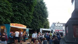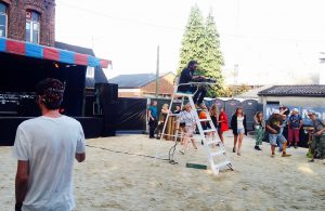 Après avoir entré leur nom sur facebook et aperçu que beaucoup de mes amis connaissent ce groupe, je suis ravie de les découvrir à mon tour. Cependant, aujourd’hui je m’attendais à voir Mansfield.TYA et je me retrouve face à quatre joyeux lurons qui chantent des textes légers sur des mélodies entraînantes. Il me faut donc un peu de temps pour m’acclimater mais lorsqu’ils entament leur morceau La Vérité, c’est le coup de coeur. Frànçois & the Atlas Mountains, c’est une pop légère, psychédélique et dansante, mais pas naïve pour autant (oui, depuis je suis devenue experte du groupe). Je commence à peine à m’amuser que c’est l’heure de retourner au bus. Les comédiens sont encore là, mais cette fois je ne me ferai pas avoir.
