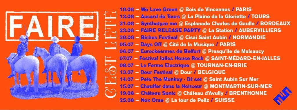 Lunettes en travers en mode décontracté-maîtrisé, des looks volontairement criards, une dégaine de beau gosse insolent mais à la cool parfaitement étudiée : c’est le trio FAIRE que les festivaliers attendent avec beaucoup d’impatience. En quelques mois, le groupe a réussi à faire parler de lui à coups de clips totalement dans l’air du temps, mélangeant mauvais goût assumé et provocation on ne peut moins subtile. De quoi faire exploser les feeds Instagram.