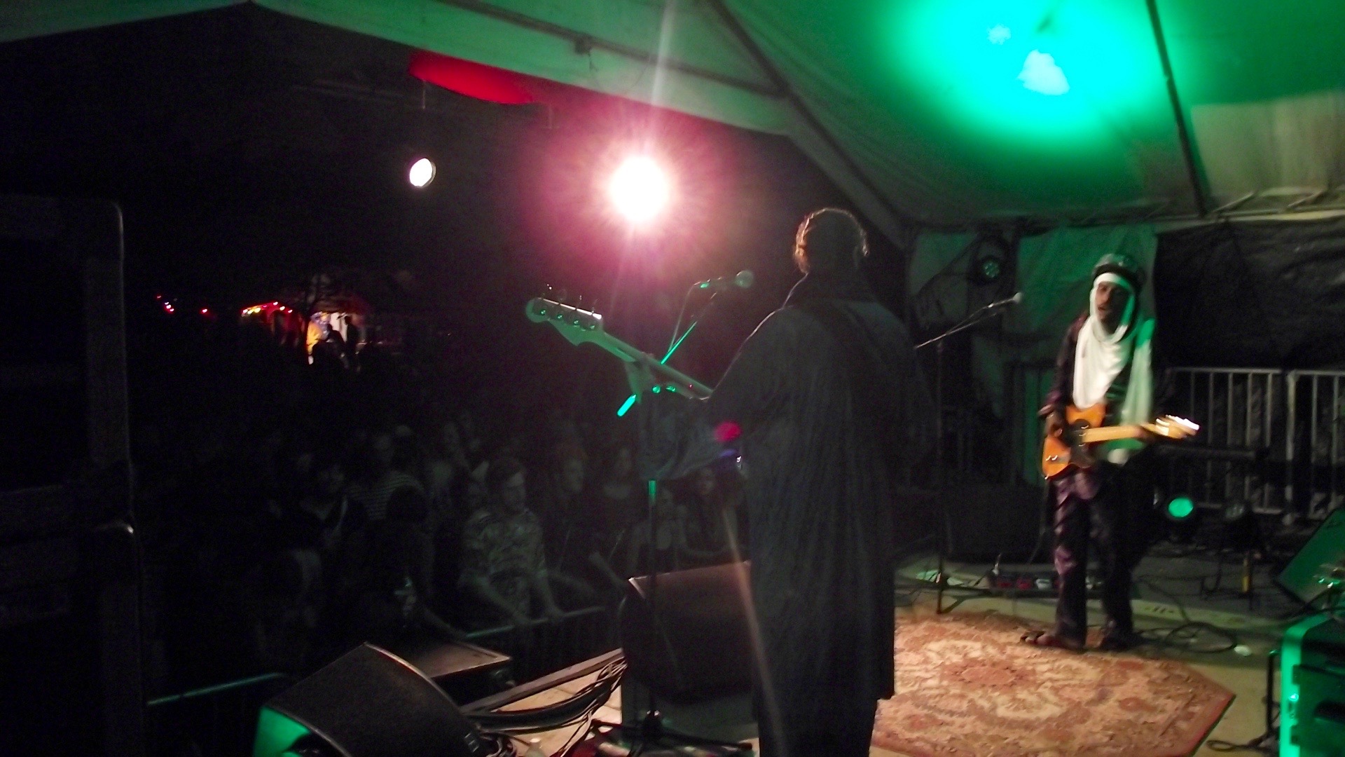Il y a la grande scène qui accueille les têtes d’affiche et les groupes les plus énergiques. De là, le public a une vue en contre-plongée sur les musiciens déchaînés et la scène ornée d’ailes et recouverte de vieux tapis persans. Les plus téméraires peuvent s’y élancer pour des slams plutôt périlleux. Cette année, la scène a notamment accueilli le groupe français Cheap Wine, les anglais Hanami (présents depuis la 1ère édition du CDF) ou encore le groupe nigérien Ezza. Ezza est d’ailleurs mon petit coup de coeur. Mélange de musique touareg, africaine, groove et rock aux accents trans, ils ont déjà parcouru de nombreuses villes et c’était une fierté de les avoir avec nous. Puis Il y a la petite scène, me faisant penser à une cabane dans les arbres, qui permet une plus grande proximité entre le public et les artistes, idéale pour des concerts acoustiques comme le Breton Erwan Le Gall et sa guitare ou le groupe de bluegrass Old Moonshine Band. C’est aussi cette scène qui accueille chaque soir le dj set, certainement un des éléments les plus distinctifs de ce festival. Face au public déchaîné qui a tout sauf envie de se coucher à la fin des concerts, les organisateurs ont su réinventer les codes du dancefloor. Jusqu’au petit matin (officieusement jusqu’à ce qu’il n’y ait plus personne qui tienne sur ses deux jambes), des artistes et collectionneurs de vinyles passent aux platines, mixant les enchaînements funk, disco et soul, rendant le public complètement fou. C’est une autre manière pour la bande de copains de partager leurs petites perles musicales.