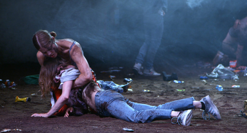 Dans les coulisses et sur scène, on porte des survets Adidas et des jeans Levi’s. Les 15 jeunes danseurs se présentent les uns après les autres pour se faire arroser d’eau. La scène est couverte de terre brune et de déchets, la bande-son flirte avec la techno, les mouvements sont tour à tour saccadés puis ralentis. Le temps du club est une illusion, et pourtant le désir de l’autre est bien là : il change de destinataire, se rapproche puis s’éloigne mais ne quitte jamais la scène. Crowd, pièce dansante imaginée et chorégraphiée par Gisèle Vienne, est une captivante ode à l’amour et à la jeunesse. Si c’était de l’amour l’est tout autant. En suivant la troupe en tournée, le film de Patric Chiha documente leur travail et leurs répétitions tout en laissant place à un dialogue nécessaire entre les danseurs et leurs personnages scéniques. Loin de n’être qu’un documentaire sur la danse, Si c’était de l’amour est un voyage sur la friction des genres et du désir, dont on ressort amoureux sans avoir vraiment compris ce que l’on vient de vivre.