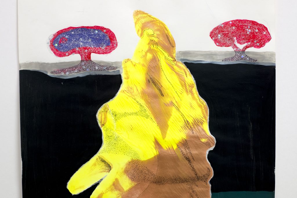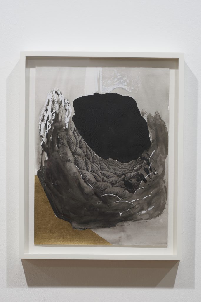 Le paysage est parfois aérien et les vapeurs et fumées évoquent alors la méditation et la volatilité des esprits. Mais Robel Temesgen fait aussi preuve d’un extraordinaire matiérisme. Les étranges formations grises à l’aspect capitonné qui se déploient dans le tunnel souterrain sont presque palpables. Malgré cette étonnante plasticité, impossible de déterminer leur nature : est-ce une matière organique ou minérale ?