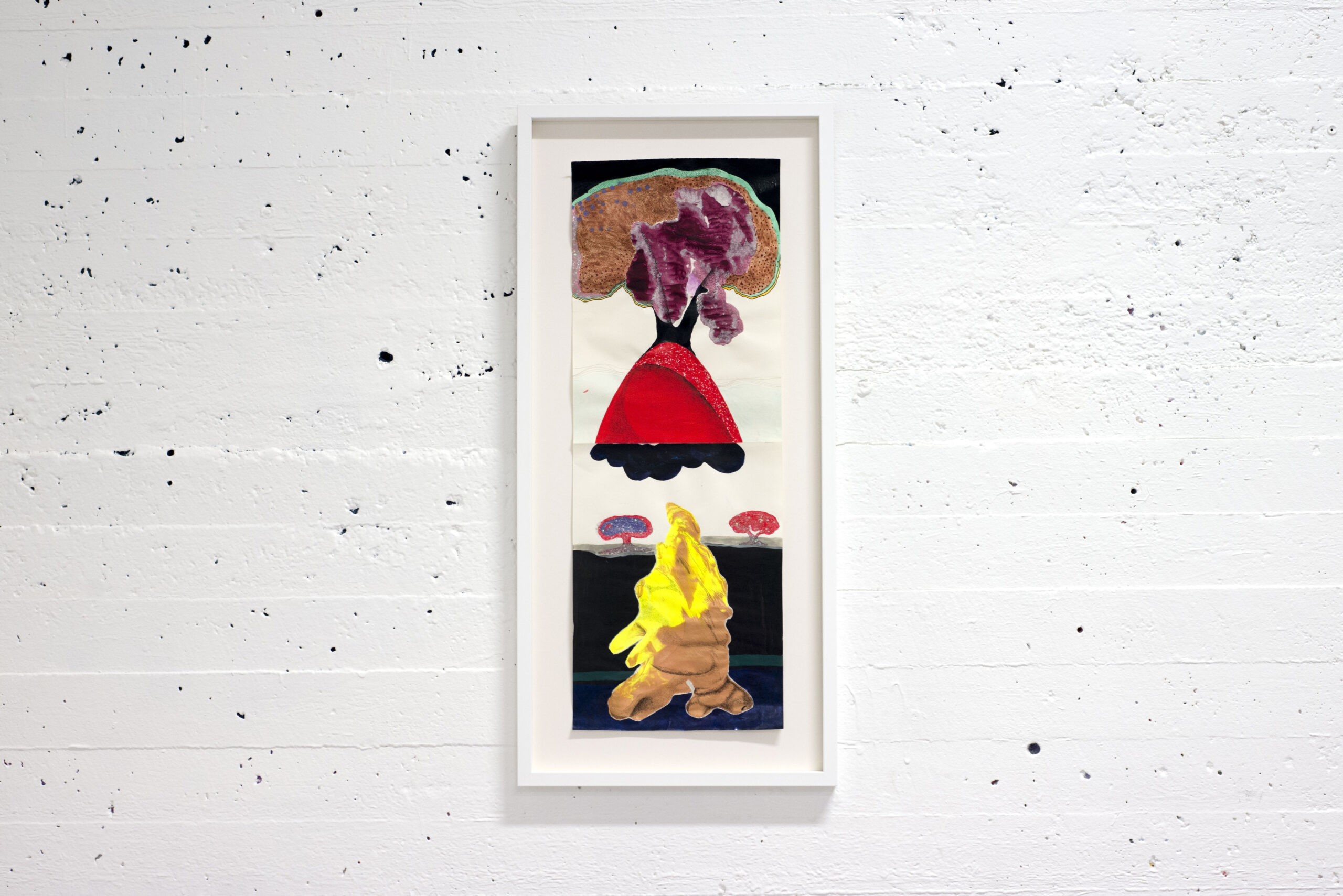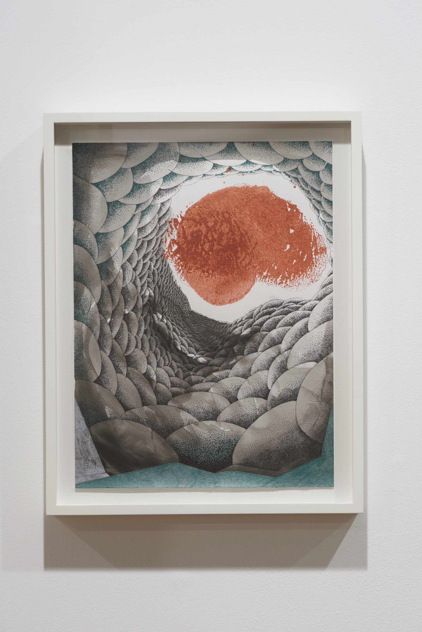Le paysage est parfois aérien et les vapeurs et fumées évoquent alors la méditation et la volatilité des esprits. Mais Robel Temesgen fait aussi preuve d’un extraordinaire matiérisme. Les étranges formations grises à l’aspect capitonné qui se déploient dans le tunnel souterrain sont presque palpables. Malgré cette étonnante plasticité, impossible de déterminer leur nature : est-ce une matière organique ou minérale ?