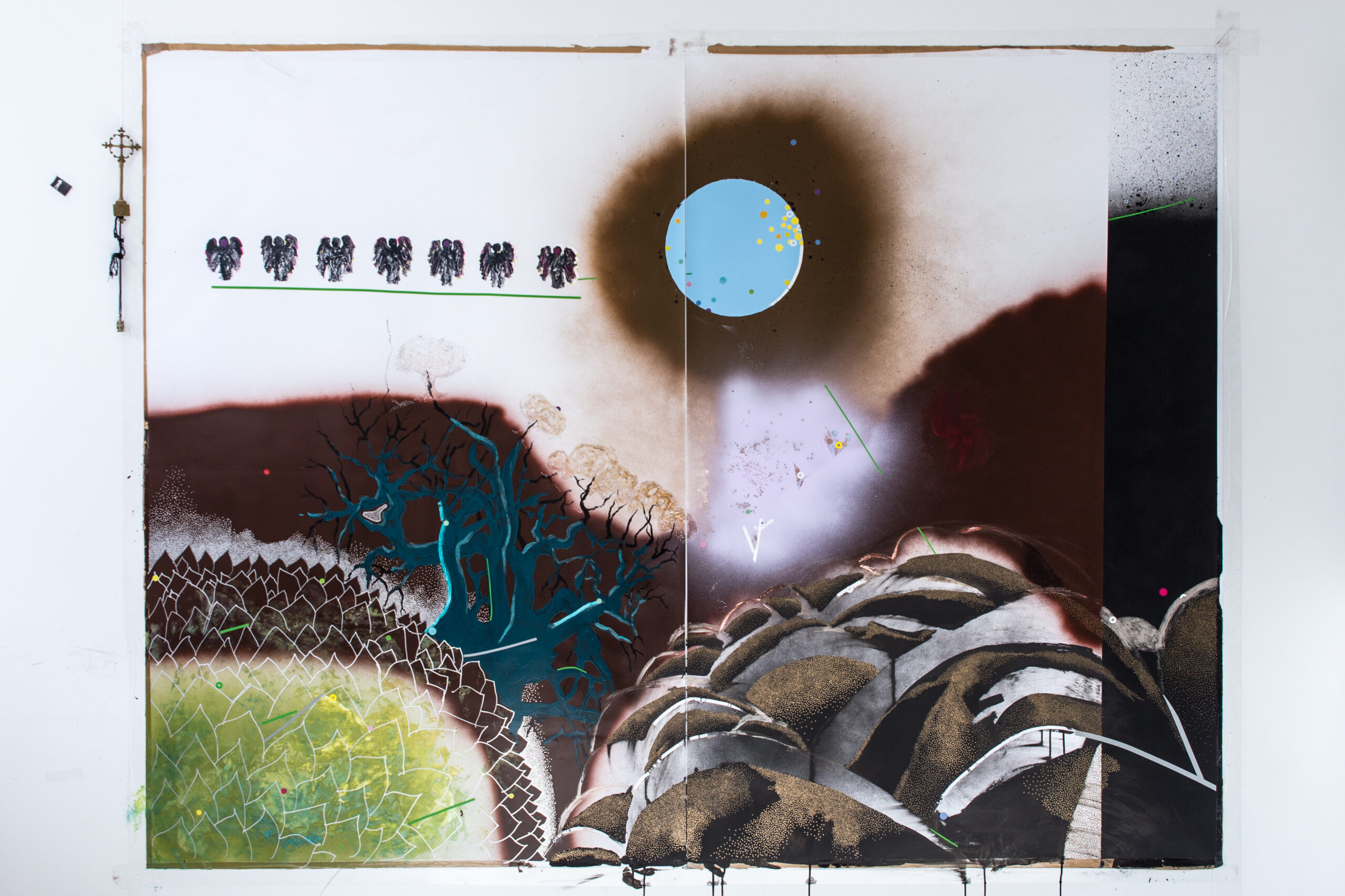 Né en 1987 en Éthiopie, Robel Temesgen vit et travaille à Addis-Abeba. Mais il reste un artiste résolument international (il a, par exemple, participé au workshop germano-éthiopien « A-B-A-B-A : from hear to here »). Il est représenté par la galerie Tiwani Contemporary à Londres, dans laquelle il a aussi exposé sa série « Adbar » au début de l’année 2016.