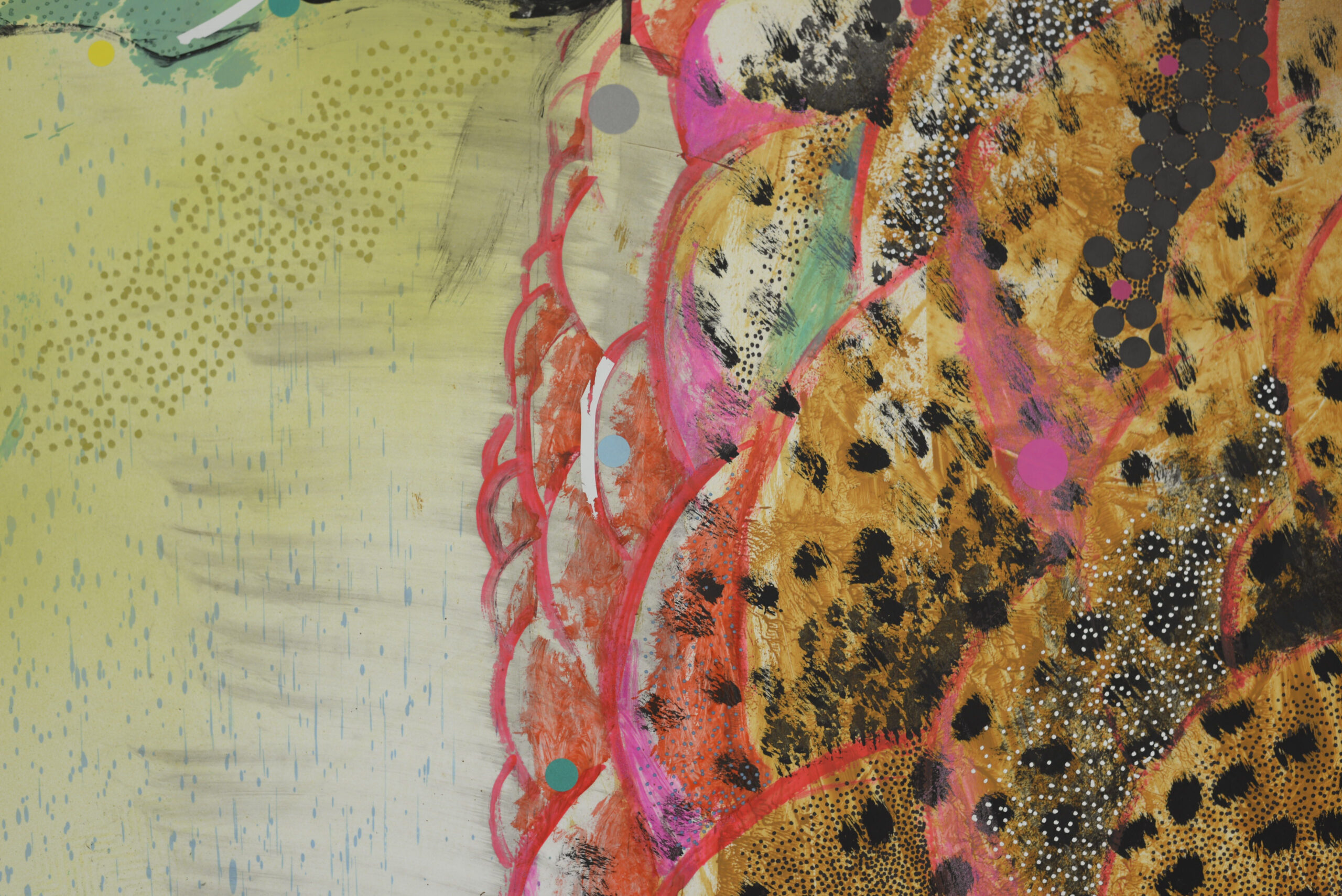 La palette chromatique très pop, voire psychédélique, s’ajoute au contraste entre les effets évanescents et le graphisme net de certains motifs. La nature est ainsi transfigurée. Robel Temesgen révèle le caractère mystérieux qui réside dans la matière du monde. Ces paysages surréalistes ont donc une grande valeur symbolique.