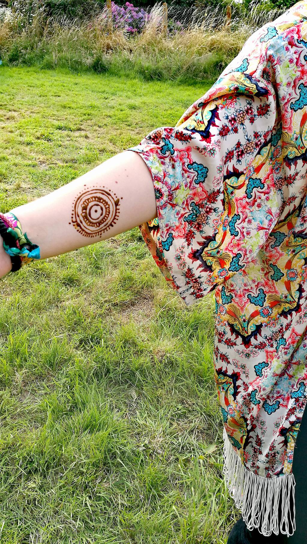 Dans un endroit hors du temps dans un coin du site, là où se trouve le sauna et tout n’est qu’apaisement, la rédac chef fut prise d’une envie soudaine de tatouage au henné et se retrouva avec un mandala sur l’avant-bras (en ayant demandé un triangle).