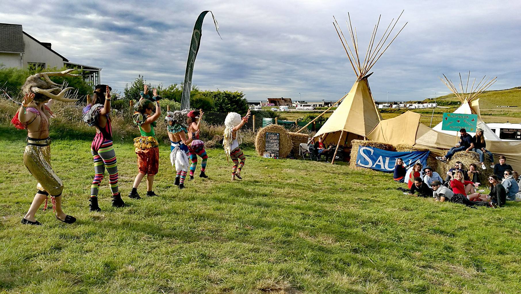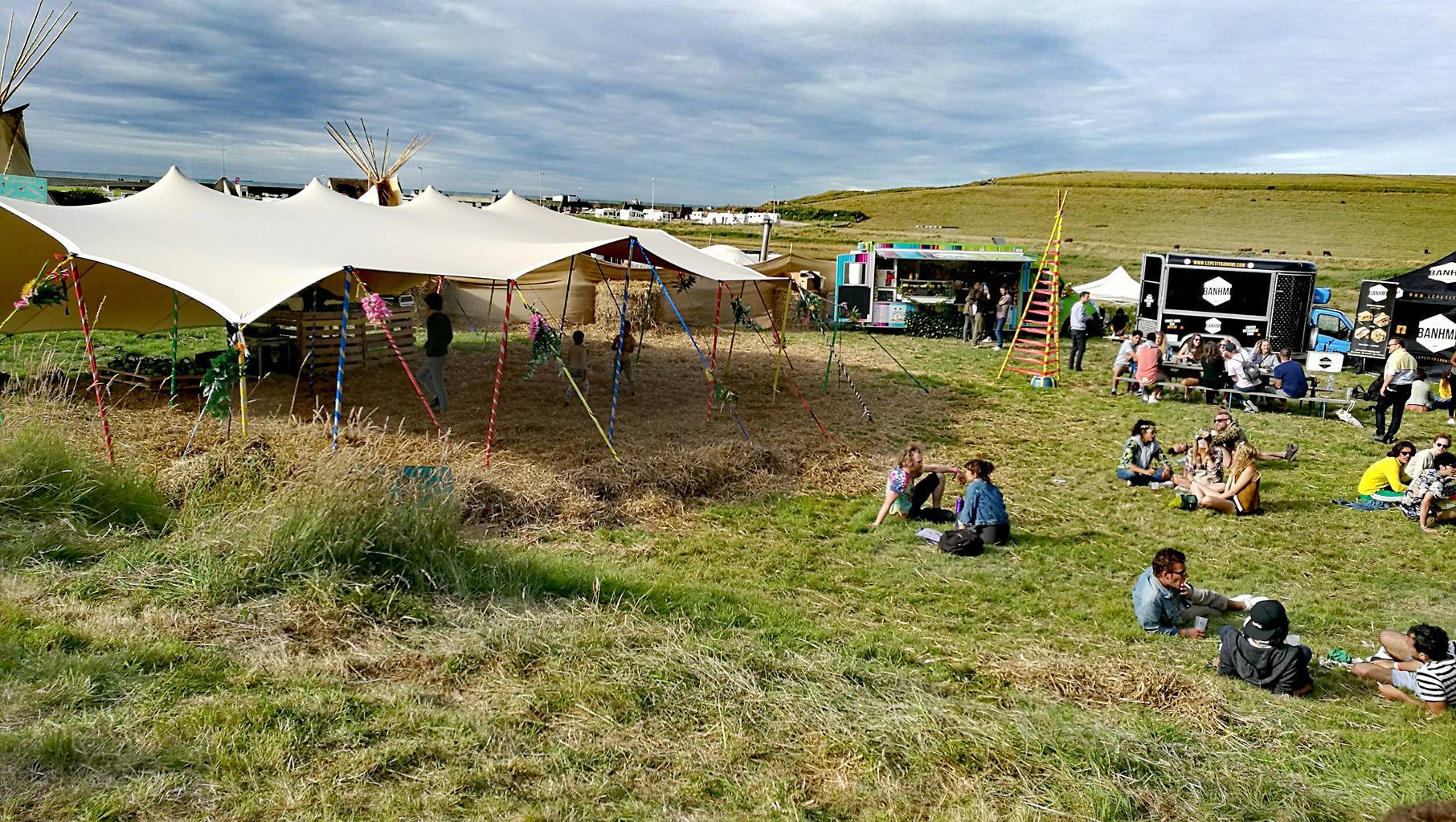 Est-ce nécessaire de préciser que nous étions au mauvais endroit ? Par chance, nous sommes arrivées à temps pour les premiers concerts : bonne humeur toujours au rendez-vous pour les néophytes de la Normandie que nous sommes malgré ce bizutage. La plage est à quelques mètres, les belles falaises d’albâtre aussi, le festival est entouré par un petit bois verdoyant et les oiseaux chantent.