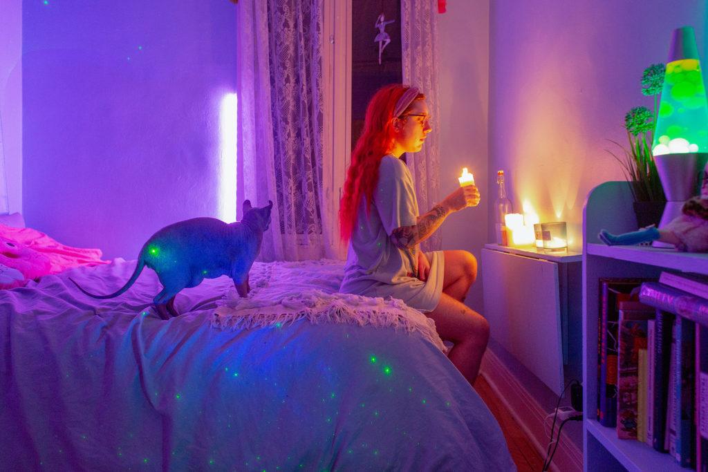 « Puberty » est une série d’autoportraits qui examine le processus intime et vital du self-care pour une personne transgenre non-binaire en thérapie de remplacement hormonale (TRH). Prises sur une période de deux ans, les images de la série mélangent couleurs irréelles et des endroits banals pour documenter le quotidien et les lents, et subtils, changements physiques qui s’opèrent durant la transition. En montrant la TRH comme un processus sans but final précis, « Puberty » nous invite à imaginer l’identité au-delà de la binarité.