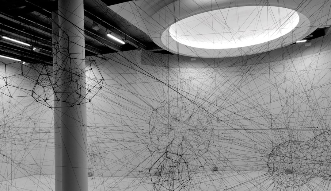 Lors de l’exposition qu’il vient d’achever au Palais de Tokyo en début d’année, le plasticien a de nouveau présenté son oeuvre »Galaxies forming along filaments, like droplets along the strands of a spider’s web » : un réseau de câbles connectés tel une toile d’araignée. Un réseau interactif avec son public, où ce dernier peut se faufiler entre les tissages. Tout contact humain sur chaque câble produit alors un son ce qui nous donne alors un orchestre de nappes électroniques, anarchiques et mélodieuses.