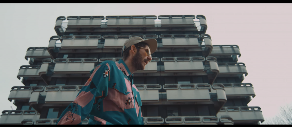 Mais à la différence de Christine qui réalise ses clips sur le sol moelleux de scènes abstraites et monochromes – espaces où les ombres portées s’étirent à l’infini –, Révérence est filmé dans sa ville.