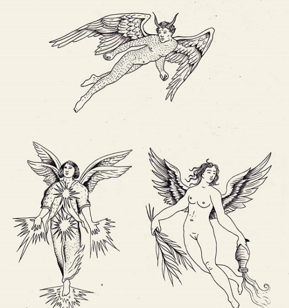 Pour les tatoos, c’est LA. Guish et Joseph Le Druide qui s’attelleront trois jours durant à la gravure sur peau. Leurs deux univers se répondent par l’utilisation du noir, mais s’opposent par leurs styles respectifs : dessins naïfs, jeux d’ombres et inspiration californienne pour l’un, traits fins, détails raffinés et penchant mystique pour l’autre.