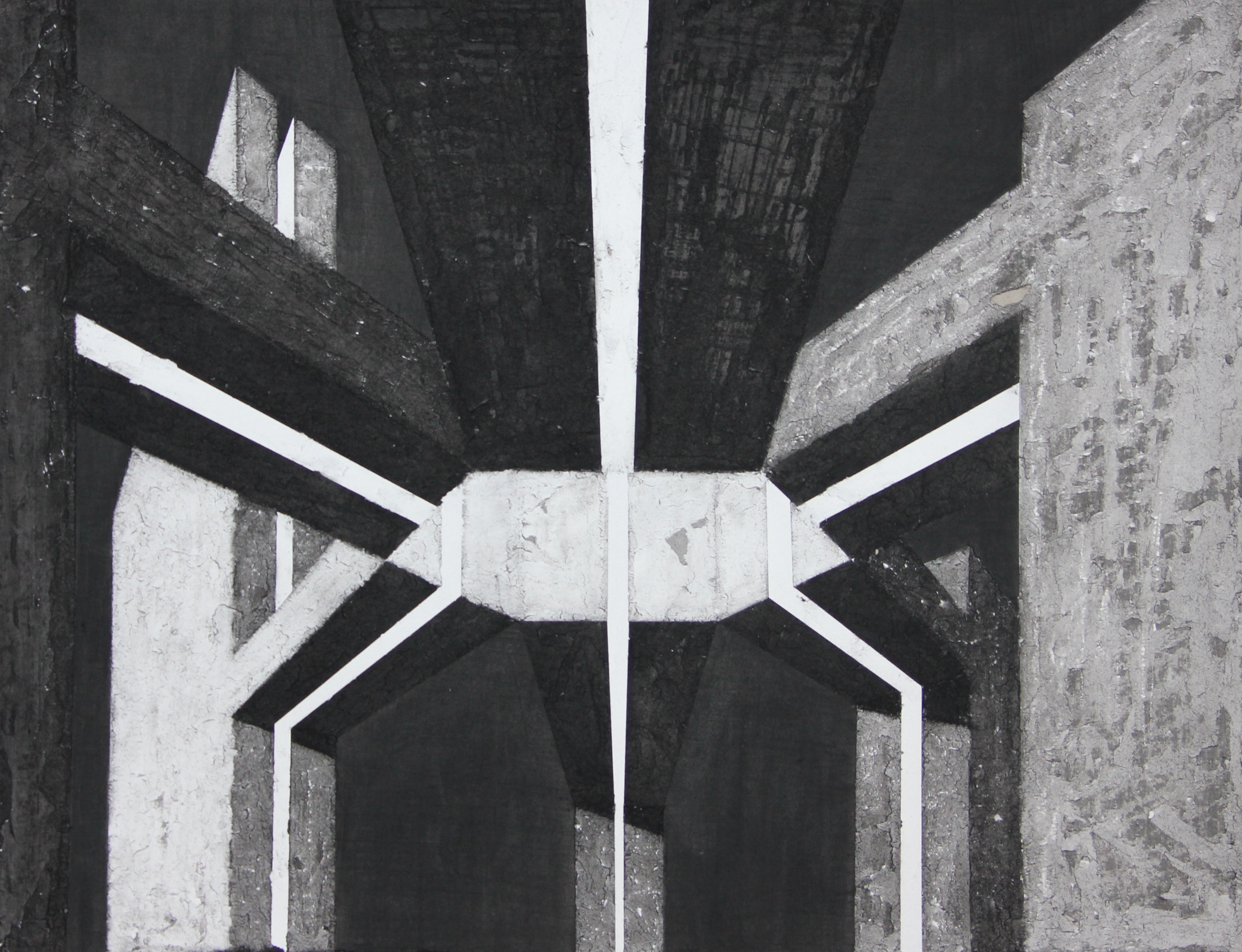 Mais où a-t-on déjà croisé ces formes rectilignes et imposantes ? Dans un cauchemar ? Ou dans les films et jeux vidéo qui inspirent tant Thomas Dussaix ? Ce jeune artiste sarthois, influencé par la gravure et l’estampe, travaille avec la technique du grattage depuis la fin de ses études aux Beaux-Arts du Mans en 2010.
