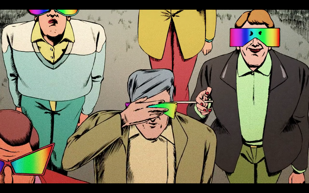 Au début, je trouvais la couleur vulgaire, décorative. Sur les clips de Renart, c’était très bien d’avoir du noir et blanc ; sur le suivant, je cherchais à montrer des valeurs, des teintes. Je suis allé sur la couleur vraiment progressivement, je suis quelqu’un d’assez peureux. Il faut que j’apprenne et ça prend du temps. Je voulais que la couleur me surprenne, je ne voulais pas copier, je voulais atteindre une évidence – parce qu’il faut produire beaucoup d’images, cette évidence est nécessaire, il faut pouvoir produire vite et parfaitement. Ça m’a pris du temps, autant que d’accepter son propre kitsch. Je voulais être un esthète, être dans la forme pure. J’aime l’austérité, je me cachais derrière le noir et blanc qui rebute. Puis j’ai compris qu’ajouter un peu de sexy dans le dessin attirerait les gens vers une austérité qui serait plus fine et plus cachée.