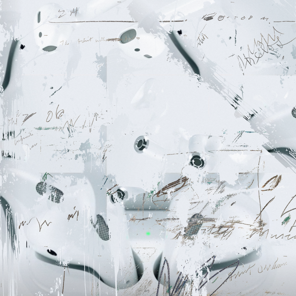 Pour la pochette, Vina Konda fait appel au graphiste Virgile Flores. Le musicien savait qu’il souhaitait mettre en avant des air pods avec du cérumen pour illustrer l’interface homme-machine. Cette interface nous envoie des informations sonores et en retour, nous déposons un peu de notre corps sur la surface. C’est un échange organique qui se fait entre technique et corps humain, nous renvoie ainsi au sujet principal de cet EP.