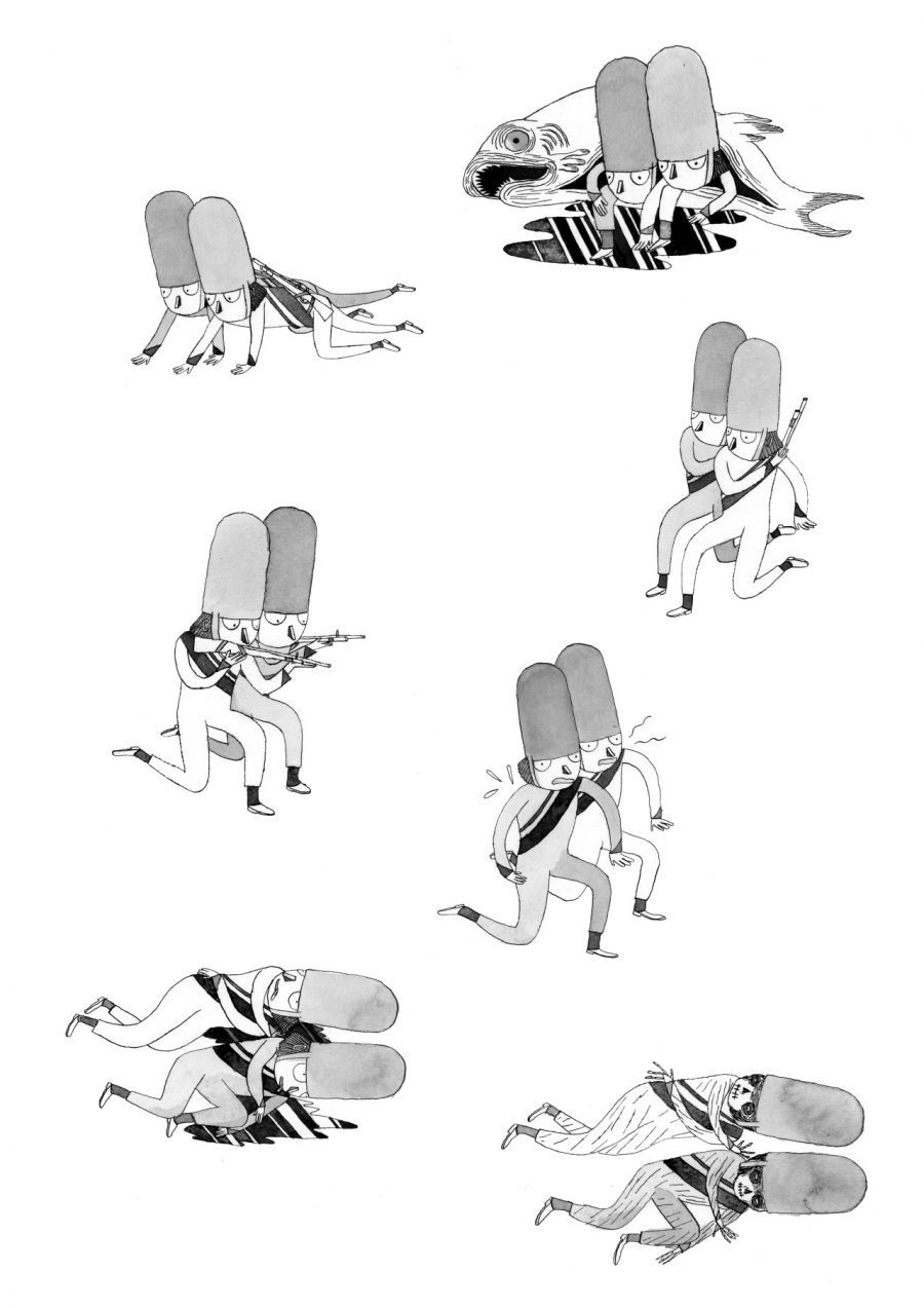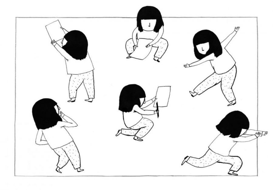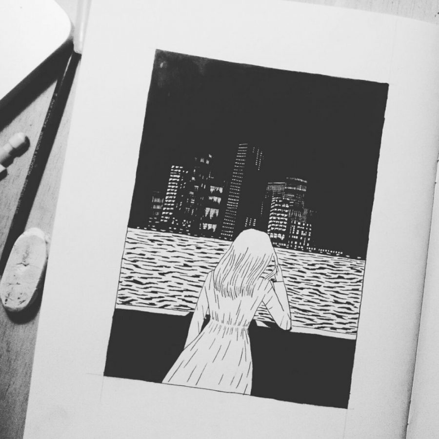 Naviguant entre de petits croquis sur son carnet et des projets plus vastes, ses illustrations se retrouvent aussi bien au sein de gravures que de broderies. À travers le format du roman graphique, du clip, ou encore du gif, elle explore les possibilités de la mise en mouvement – et donc de la mise en narration – de ses dessins.