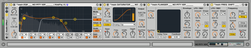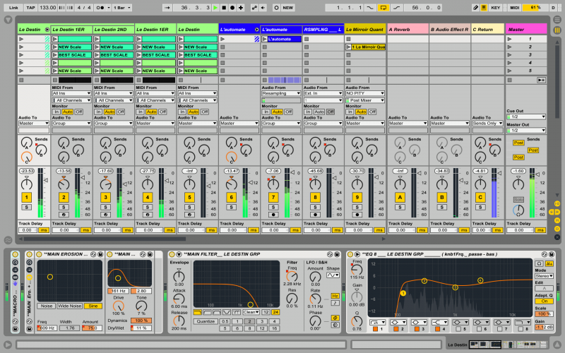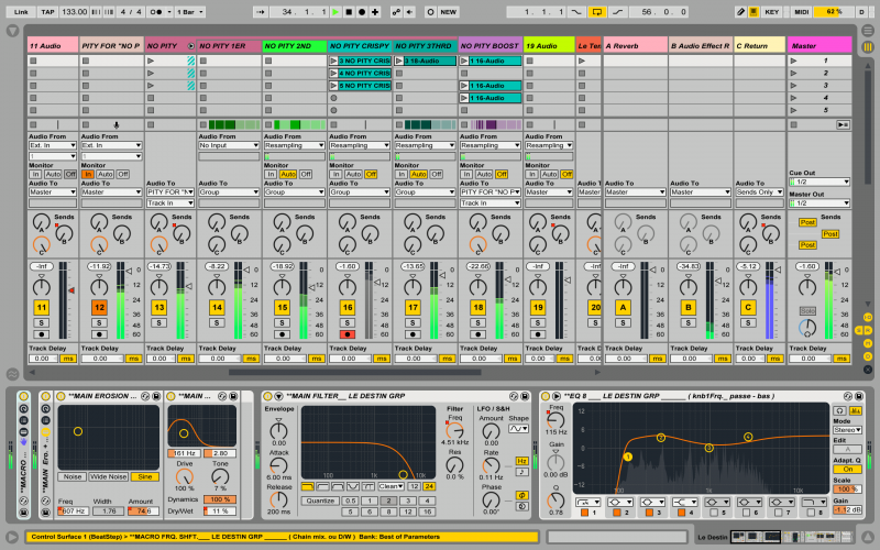 Je compose tout sur ordi pour l’instant, j’ai tout appris par moi-même, je regarde beaucoup de tutos. J’ai commencé à trouver ma sonorité en créant des racks d’effets assez complexes. Sur mes chaines il y a parfois une vingtaine d’effets qui bougent en même temps, certains me dirait mec tu es en train de détruire le son, je sais bien, mais justement, en détruisant le son j’en crée un nouveau. Je pars de samples de batterie, et j’écris tout à la souris. L’autre point qui fait ma patte je pense que c’est de faire des centaines et des centaines d’automations. Je peux passer énormément d’heures à écrire juste une minute de musique, je creuse vraiment dans le détail.